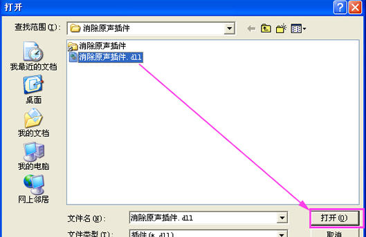 進(jìn)入到“音頻插件設(shè)置”窗口中,我們來安裝這一款消除原音插件——點(diǎn)擊這里添加插件,在打開窗口中打開下載好的插件: