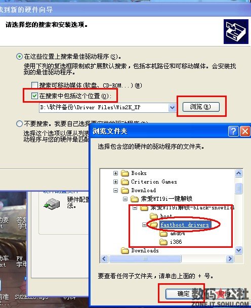 如圖那個打勾,然后點瀏覽,找到上面下載并解壓的“一鍵解鎖軟件”選擇fastboot_drivers,然后點擊確定。