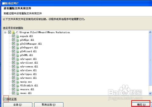 5、提示刪除項(xiàng)目時(shí),勾選“自動(dòng)全選”,然后單擊“確定”,如圖