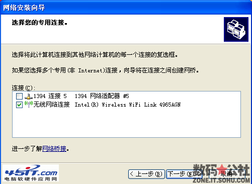 這里選擇你的無線網(wǎng)卡,點(diǎn)擊下一步,后一個(gè)會(huì)叫設(shè)置計(jì)算機(jī)描述 以及名稱。填上 點(diǎn)下一步 又有個(gè)設(shè)置工作組名 設(shè)置好 點(diǎn)下一步 然后選擇 "關(guān)閉文件和打印機(jī)" 點(diǎn)下一步