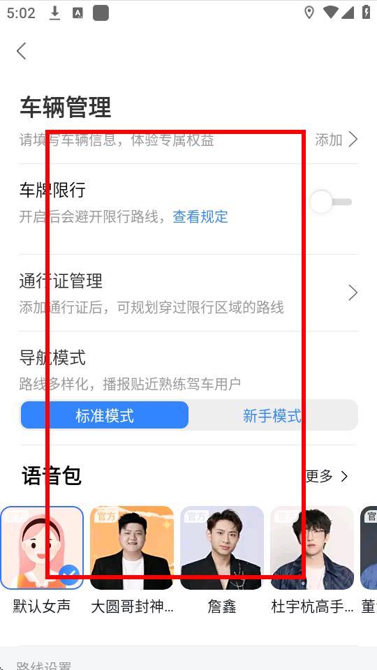 4、在導(dǎo)航設(shè)置頁面,找到語音包區(qū)域,選擇喜歡的語音包即可設(shè)置導(dǎo)航語音。