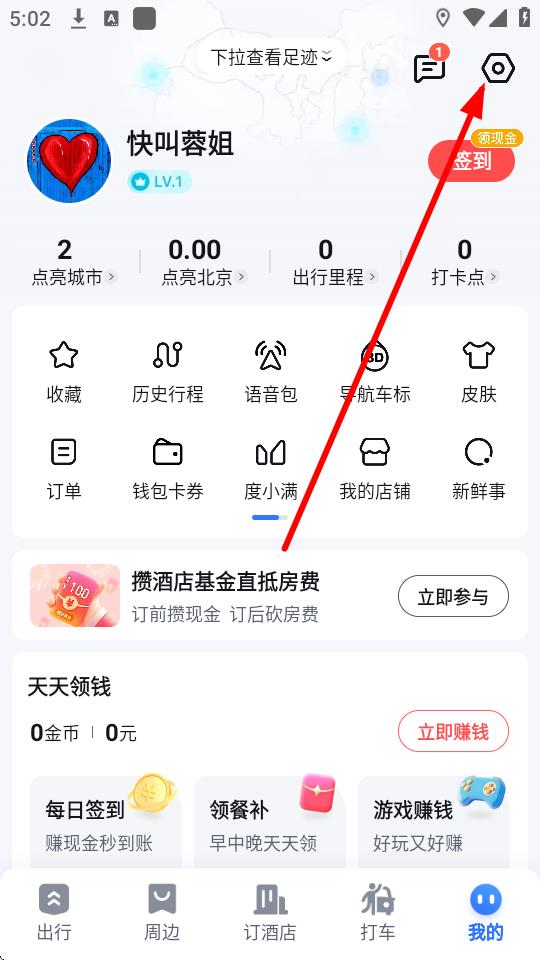 2、在個(gè)人頁面中,點(diǎn)擊右上角的設(shè)置圖標(biāo),進(jìn)入設(shè)置界面。