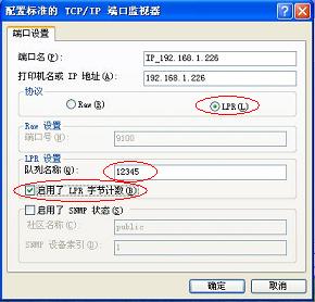 6. 這一步選“自定義-設置”選“LPR”在“啟用LPR字節(jié)計數(shù)”前打鉤,隨便輸入一個隊列名,如:12345