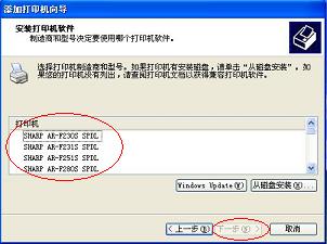 10.選擇正確的復印機型號,點“下一步”開始安裝