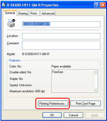 3. 右 擊 [ 用戶使用的打印機(jī) ] 圖標(biāo),并點(diǎn)擊 [ 屬 性 ] ,調(diào)出打印驅(qū)動(dòng)程序的屬性畫面“B-SX600-HS11-QM-R Properties”