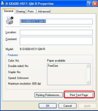 6. 在打印驅(qū)動(dòng)程序的屬性畫面上點(diǎn)擊 [Print Test Page(打印測(cè)試頁(yè))]按鈕,進(jìn)行打印測(cè)試。