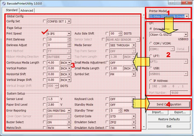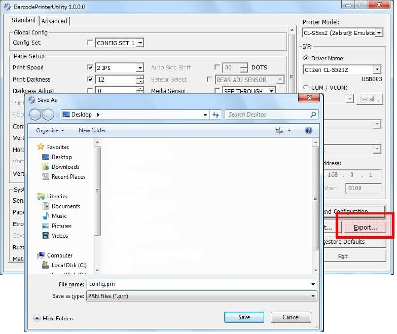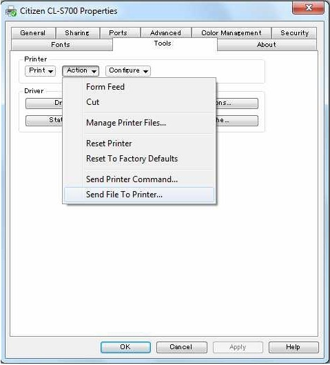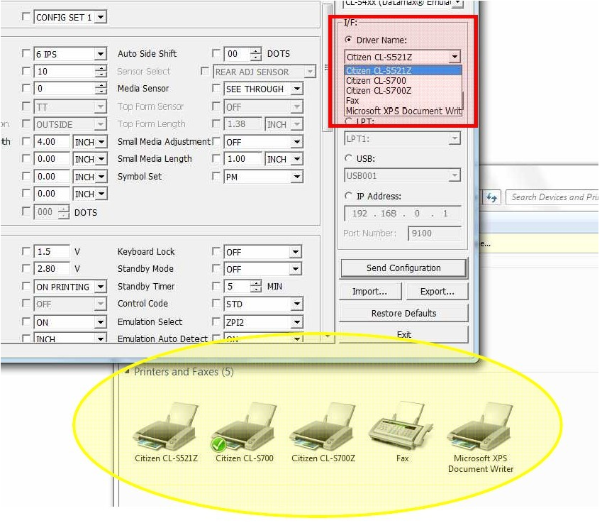 2、配置文件也可以通過Citizen打印機(jī)驅(qū)動(dòng)程序來進(jìn)行發(fā)送。