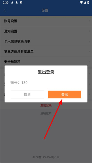 4、在彈窗中選擇登出按鈕,即可完成應(yīng)用的退出登錄操作。