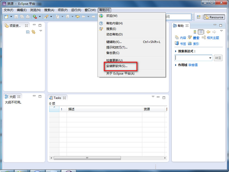 1.啟動(dòng) Eclipse,利用 Eclipse Update Manager安裝 PyDev。在 Eclipse 菜單欄中找到 Help(幫助)欄,選擇 Help(幫助) > Install New Software(安裝新軟件)。如下圖: