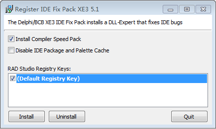 安裝IDEFixPackRegXE3.exe軟件,這是加速軟件,選擇(Default Registry Key)之后都是下一步