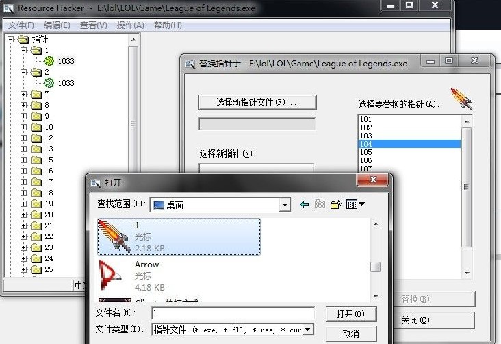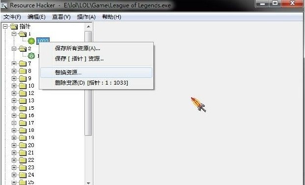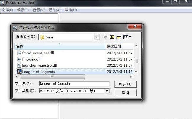 2..用ResHacker打開英雄聯(lián)盟根目錄GameLeague of Legends.exe 文件;