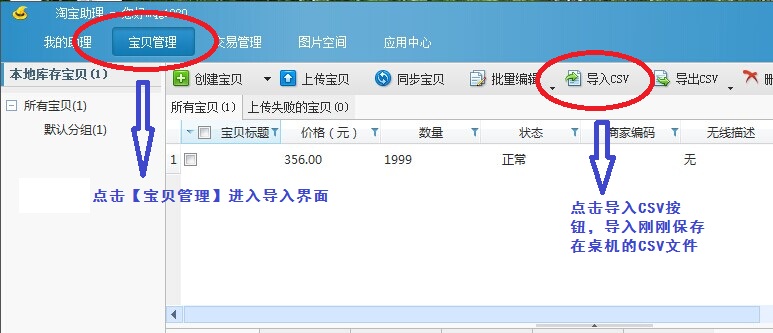 第二步:等導(dǎo)出完成后,打開淘寶助理,按下圖操作