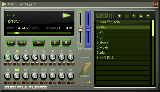 MIDI播放器,加綠框的部分為做了MIDI Learn