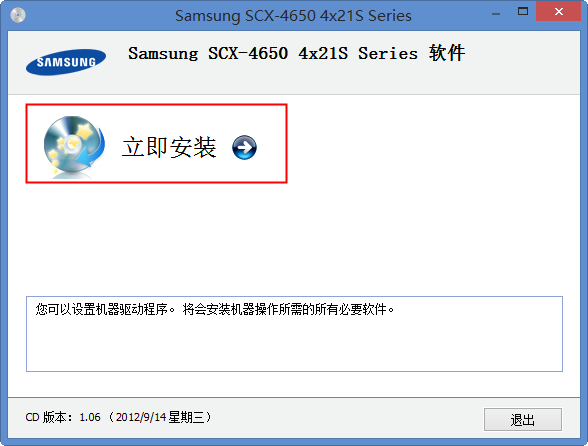 1、下載并運(yùn)行三星SCX4650掃描儀驅(qū)動,選擇【立即安裝】