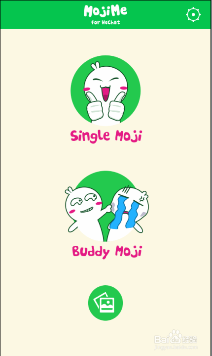 1、首先下載一款微信的MojiMe 自定義表情制作工具到手機(jī),安裝完成后,在手機(jī)中打開(kāi) “ MojiMe ” ,先制作一個(gè) “ 單人動(dòng)畫(huà)表情 ” 或者制作一個(gè) “ 雙人動(dòng)畫(huà)表情 ” 。