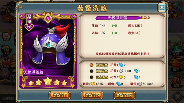 提示:由于洗煉石比較稀缺,而高級洗練的效果較好,建議玩家多多使用高級洗煉哦。