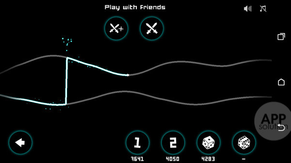 第一種玩法是首先點擊屏幕右下的數(shù)字1進入游戲,我們會在其中看到 2 條曲線,沒有相交。玩家在其中作為某一條曲線上前行的光點發(fā)光發(fā)熱,而且還要盡可能的吃到綠色能量星。當(dāng)遇到紅色吞噬物時,你就要單擊屏幕以更換路徑跳躍到另一條曲線上,除非你想觸發(fā)「呲」的一聲讓代表著你的光點消失殆盡。當(dāng)然隨著你前進越來越順暢,曲線會隨時變化方向,這就加大了你判斷光點跳躍時間的難度。