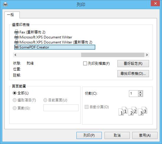 3.選擇 SomePDF Creator 印表機(jī),按[列印]。