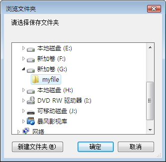 5 選擇保存被誤刪除文件的目錄,注意,為了防止被刪除文件被覆蓋,影響恢復效果,因此,我們的保存目錄最好不要和被刪除文件在同一個驅(qū)動器。因此,我們選擇G:\myfile,點擊確定。