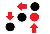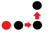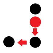 圖片的說明比文字更直觀,下圖中紅色的珠子是玩家已經(jīng)點起來移動的珠子,紅色的箭頭是移動的方向,而黑色珠子是固定在游戲畫面中的珠子。以下是幾種基礎(chǔ)的轉(zhuǎn)珠組合。