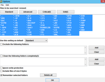 支持標(biāo)準(zhǔn)、高級和自定義清理,可添加、編輯要清除的文件類型