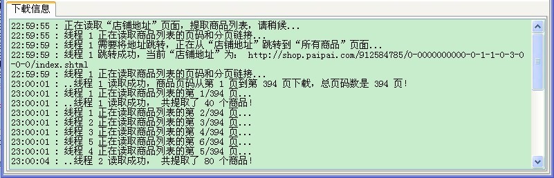 ▲省 力:商品批量兩步順序復(fù)制,完全傻瓜操作,使用極其簡便。拍拍地址欄中輸入被下載店鋪的地址,點(diǎn)擊“下載列表”便可以看到效果;點(diǎn)擊“下載商品”便可下載完整商品信息。
