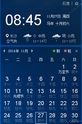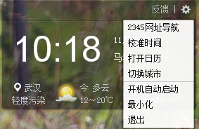 2345桌面天氣日歷掛件(電腦桌面天氣插件)是一款桌面天氣預報軟件。該軟件界面簡潔、畫面精致,還具有透明的皮膚和時間校準功能,非常漂亮,是一款貼心軟件,還有常見的日歷功能,可以為你精確的報告天氣的變化,方便人們出行.軟件小巧但功能強大,放在桌面,是你工作和生活的好幫手。同時去除了掛件下排的推廣鏈接、標題的顯示及其它推廣鏈接。界面看起來比較清爽,是一款生活必備的工具。
