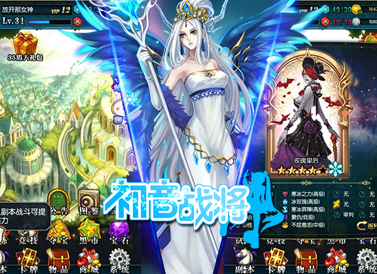 初音戰(zhàn)將是一款清新日漫風(fēng)格的女神收集策略卡牌類手游。游戲采用魔幻題材日系畫風(fēng),游戲創(chuàng)作團隊為體現(xiàn)卡牌的個性,制作了上百張的人類、精靈、龍族與亡靈四大種族、畫風(fēng)新異的女性神靈。游戲以策略布陣與卡牌養(yǎng)成核心玩法,鮮技能特效明亮眼,魔法屬性相生相克,讓整個游戲變得豐富耐玩。獨創(chuàng)的升星與魔法技能洗練能夠培養(yǎng)出獨一無二的出戰(zhàn)陣容,從而建立自己的個性征戰(zhàn)隊伍。