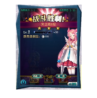 戰(zhàn)斗結(jié)束后,如果成功擊敗敵人,將會展示獲得的經(jīng)驗值和戰(zhàn)利品,包括銀幣、金幣以及卡片碎片等。