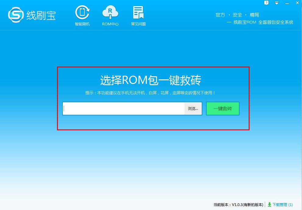 進入一鍵救磚后,上傳匹配機型的ROM包,可以在線刷寶客戶端的ROM中心下載。