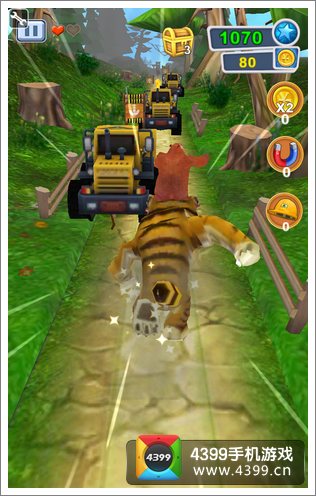 游戲中你將要扮演熊大逃脫光頭強(qiáng)的追擊。在急速奔跑中,橫穿滿是危險(xiǎn)的森林,跳過刺激的蘑菇陣,從幾千英尺的懸崖垂直飛下,在古鎮(zhèn)街道中戲弄光頭強(qiáng),雙方斗智斗勇,熊大最終能逃脫光頭強(qiáng)的追擊嗎?