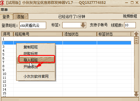 2、之后導(dǎo)入旺旺之后,選擇開始添加