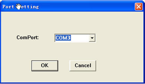3.然后設(shè)置編程軟件的通訊端口為USB 轉(zhuǎn)COM的端口號,如下圖中的COM3,設(shè)置完成后軟件即可通過USB 數(shù)據(jù)線與機(jī)器通訊。