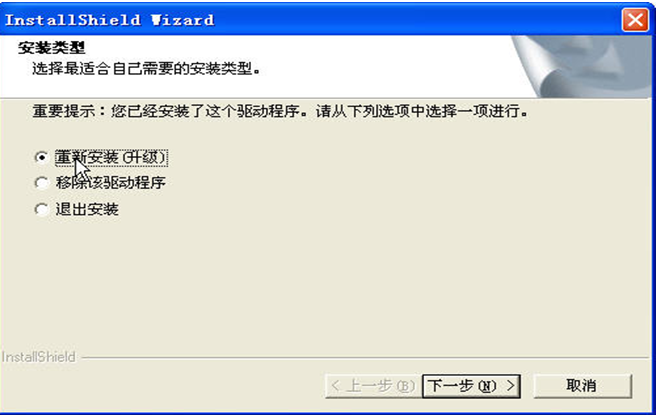 選擇重新安裝(升級),然后點(diǎn)擊下一步,完成后重新啟動計(jì)算機(jī)。