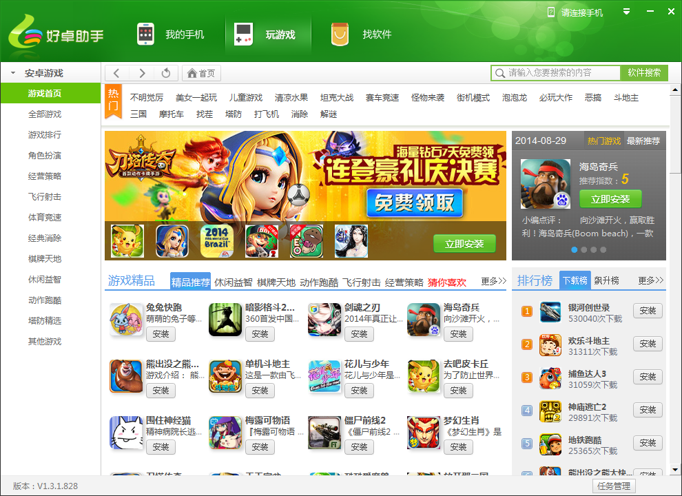 好卓手機助手是一款安卓應用市場軟件。產品支持手機、平板、智能電視等Android平臺系列終端設備,應用收錄齊全,機型適配廣泛。好卓助手提供海量游戲、應用。通過它可以輕松的下載、安裝、管理手機應用,優(yōu)化手機資源利用。好卓手機助手提供的所有的應用、游戲均為綠色無毒軟件。