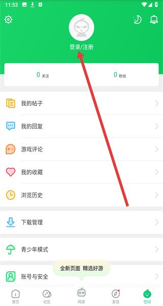 2、在個人空間頁面中,點擊登錄/注冊區(qū)域,進入登錄界面。