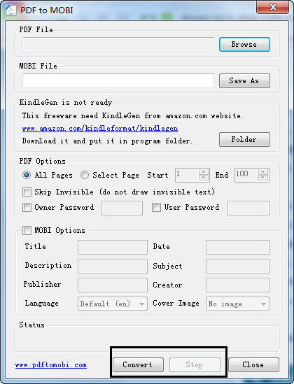 PDF to MOBI是一款免費的電子書和文檔相互轉(zhuǎn)換工具,可將PDF文件轉(zhuǎn)換為MOBI電子書格式。pdf是工作中常見的一款文檔格式,國際通用。MOBI格式是亞馬遜kindle閱讀設(shè)備的專屬格式。沒有復雜的設(shè)置和選項,只需點擊幾次鼠標即可完成轉(zhuǎn)換。PDF to MOBI需要KindleGen支持,可從亞馬遜官網(wǎng)下載