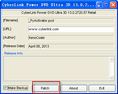 2、復(fù)制補(bǔ)丁至安裝目錄(C:\Program Files\CyberLink\PowerDVD13),右鍵管理員運(yùn)行,打開(kāi)后點(diǎn)Patch完成。
