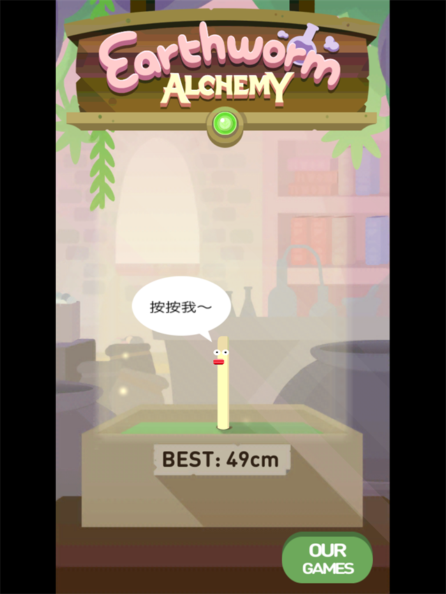 蚯蚓煉金術(shù)Earthworm Alchemy是一款別出心裁的養(yǎng)成游戲,游戲中你將飼養(yǎng)呆萌的蚯蚓,說其呆萌不如說它猥瑣,因?yàn)檎麄€游戲中它只漏出自己的頭來吃東西,其他身體部位全部在地下,通過不斷的喂食,蚯蚓將會越來越長,身體將會向地下延伸,長出不同的形狀,根據(jù)你的食物搭配,蚯蚓的身體形狀會有所不同,而且游戲中還可以花鉆石裝扮蚯蚓,怎么樣?來打造一只世界上獨(dú)一無二的蚯蚓吧。