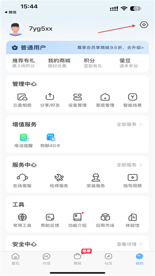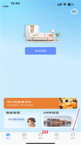 1、打開螢石云視頻的APP,進(jìn)入首頁點擊右下角我的圖標(biāo)。