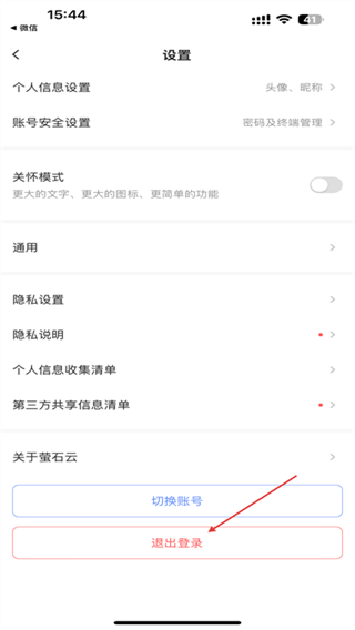 3、在設(shè)置的頁面內(nèi),點擊最下方退出登錄的按鈕。