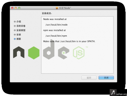 安裝成功后你就可以使用 node 和 npm 命令了。