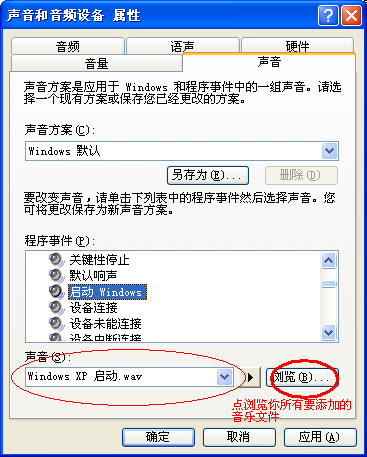 首先把想要更換的曲子放在這個目錄下面 C:\WINDOWS\Media