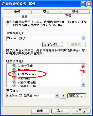 然后在“開始菜單——設(shè)置——控制面板——聲音和音頻設(shè)備——聲音——程序事件”