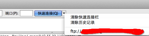 最后,上傳和下載和Windows系統(tǒng)都差不多,直接將文件拖進(jìn)去即可上傳。鼠標(biāo)已達(dá)到所需文件右鍵即有下載摁鈕,和Windows殊無二致。至于下次訪問,選擇歷史記錄就可以直接訪問服務(wù)器啦!歷史記錄在哪里呢?在快速連接摁鈕的旁邊,如下圖所示: