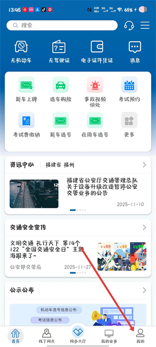 1、在交管12123首頁中,可以點擊公示公布進入查看有關信息。