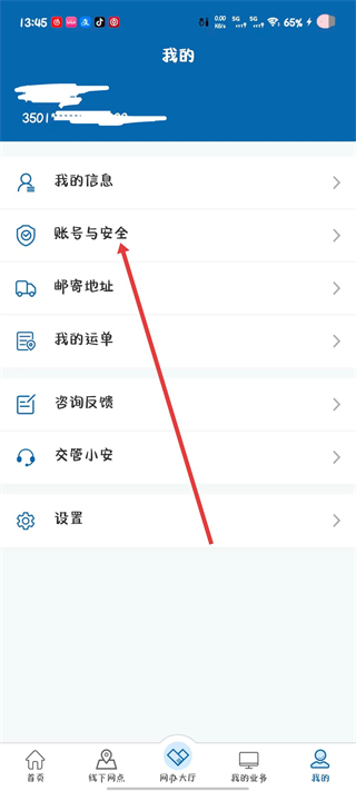2、在個人中心頁面找到賬號與安全選項,點擊進入賬號與安全頁面。