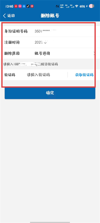4、在界面中獲得驗證碼并輸入,點擊確定按鈕即可。