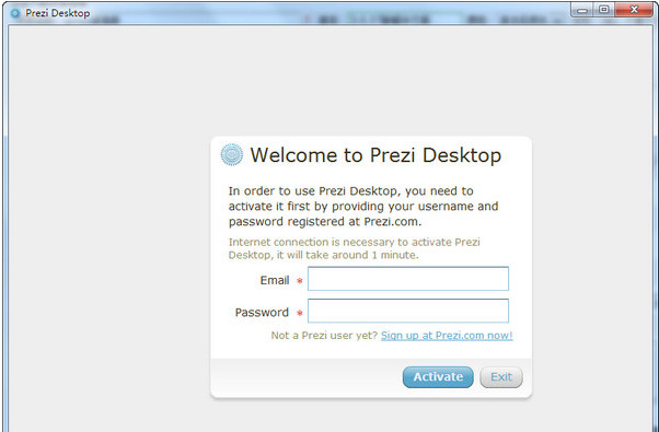prezi desktop是prezi的離線編輯軟件,可代替PPT,使用該軟件前需要登陸prezi的賬號(hào)(免費(fèi)賬號(hào)的使用期為30天)。