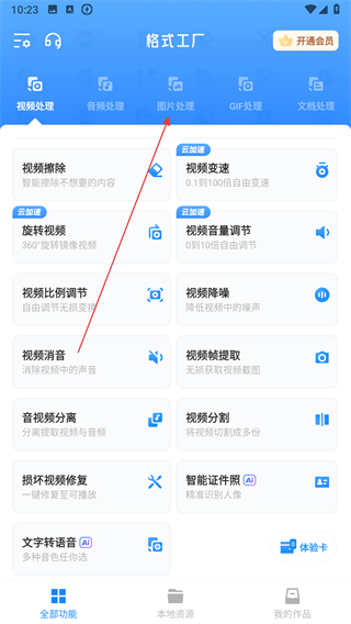 1、打開(kāi)格式工廠應(yīng)用,點(diǎn)擊頂部的圖片處理選項(xiàng),切換到圖片處理功能頁(yè)面。
